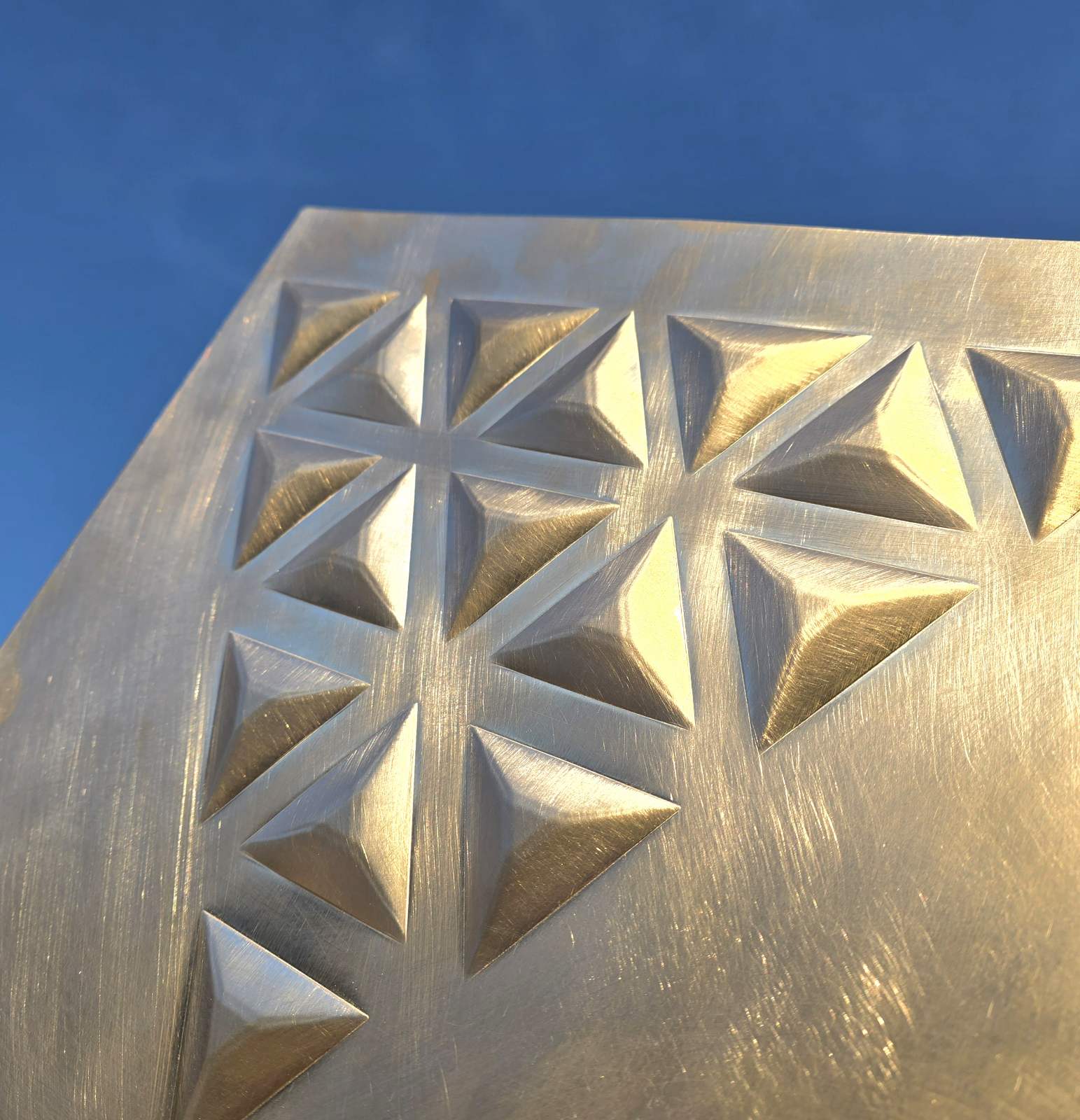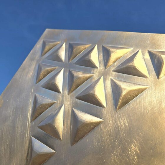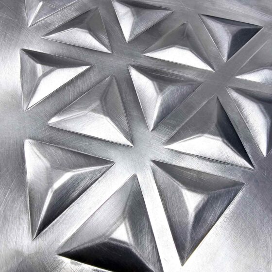 AVG METAL 3D plechy, embosované plechy spojuje funkčnost, přesnost, kvalita spolu s kreativním designem. Protlačované plechy, nopované plechy a plechy s průlismy od AVG METAL jsou pro klienty k dispozici v širokém výběru standardních vzorů nebo atypických vzorů dle zákaznických požadavků. Embosované plechy pro architekturu 3D AVG METAL mohou být kombinovány i s různými designovými perforacemi.